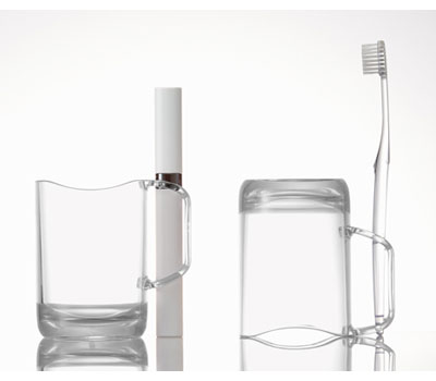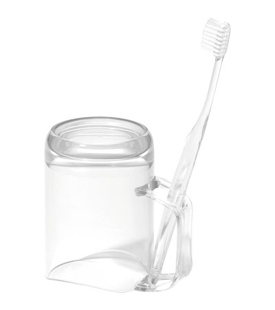 ・握りやすいもち手と口当たりのよい飲み口のうがいコップ。