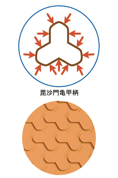 ・毘沙門亀甲柄で360°グリップ。
