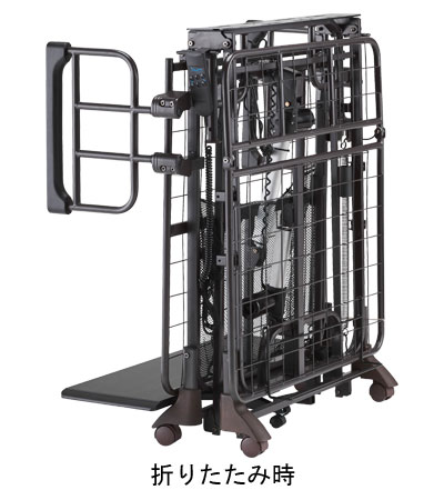 ●サイズ/幅98.5×長さ190.5×高さ58cm、折りたたみ時:幅98.5×奥行55.5×高さ115cm、床面高:28cm(マット上から床まで:36cm) ●付属マットレスサイズ/幅90×長さ190×厚さ8cm ●材質/鋼、MDF ●電源/AC100V ●消費電力/120W ●最大使用者体重/90kg ●セット内容/ベッド本体、マットレス、サイドレール2本 ●標準機能/リクライニング(角度70°)、脚上げ(角度20°) ●生産国/中国