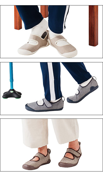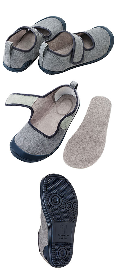 ・面ファスナーの簡単着脱で微調整も可能。間口が大きく広がり、履きやすく履かせやすい。