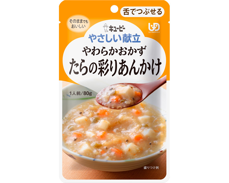 ●原材料/野菜(にんじん、さやいんげん、長ねぎ、しょうが)、豆腐(国内製造)、すけとうだら、ソテーオニオン、植物油脂、油揚げ、しいたけ、かつお節エキス、こんぶエキス、しょうゆ、砂糖、食塩、酵母エキスパウダー、ほたてエキスパウダー/増粘剤(加工でん粉、キサンタンガム)、調味料(アミノ酸等)、豆腐用凝固剤、ビタミンD、(一部に乳成分・小麦・大豆を含む) ●栄養成分/(1袋当たり)エネルギー42kcal、たんぱく質1.6g、脂質2.2g、炭水化物4.2g、食塩相当量0.5g ●アレルギー/乳成分・小麦・大豆 ●賞味期限/製造後1年7ヶ月 ●ユニバーサルデザインフード/舌でつぶせる(区分3) ●生産国/日本