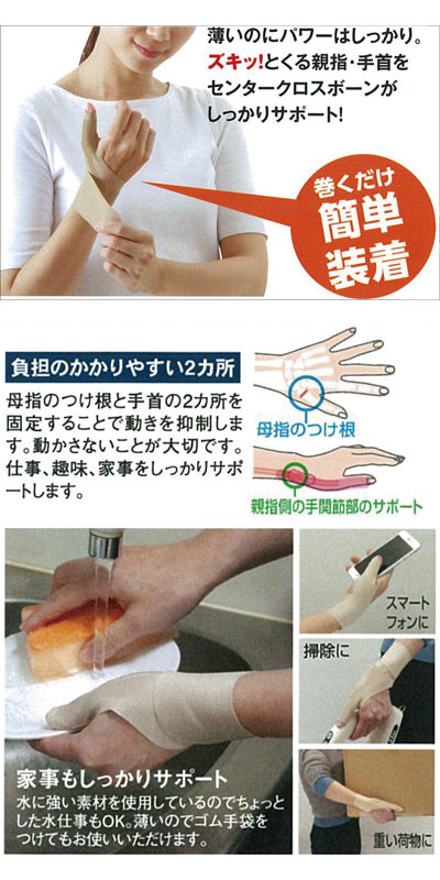 ・薄いのにパワーはしっかり。ズキッ!とくる親指・手首をセンタークロスボーンがしっかりサポート!