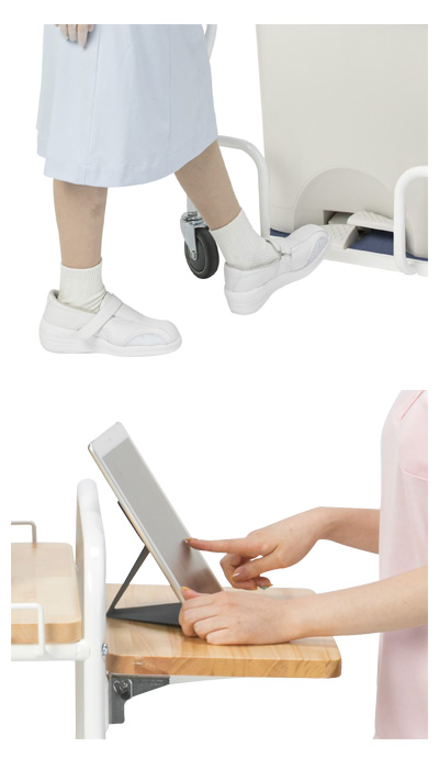 ・おむつ交換と日常業務を両立して作業ができるカート。