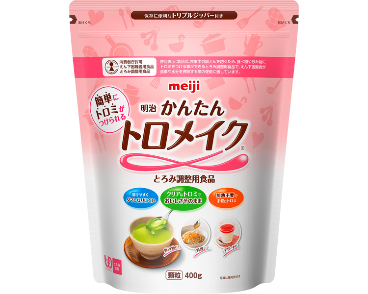 ●原材料/デキストリン、増粘多糖類、pH調整剤 ●栄養成分/(2.5g当たり)エネルギー7.3kcal、たんぱく質0.01g、脂質0g、炭水化物2.1g、食塩相当量0.05〜0.15g ●分量目安(お茶(10℃)100mLに対して)/フレンチドレッシング状:0.9g、とんかつソース状:1.6g、ケチャップ状:2.4g ●賞味期限/製造後2年1ヶ月 ●ユニバーサルデザインフード/とろみ調整 ●生産国/日本