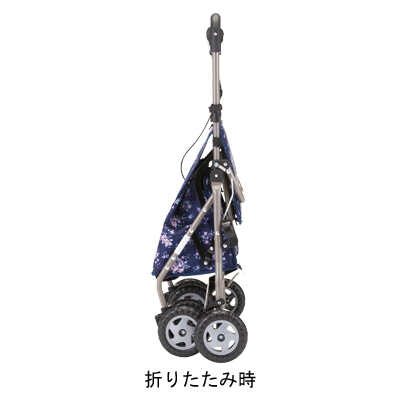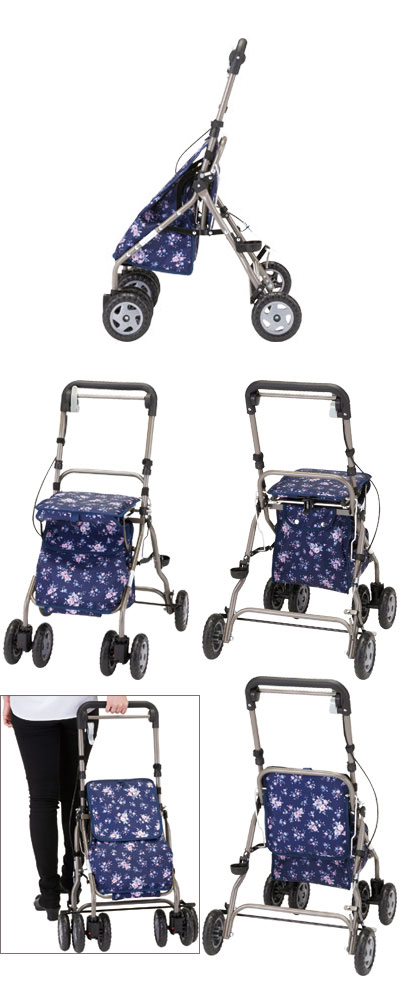 ●サイズ/幅48×奥行54×高さ81〜91(3段階)cm、折りたたみ時:奥行23×高さ88.5cm、座面:幅26.5×奥行28cm、座面高:49cm ●車輪サイズ/前輪12.7×後輪12.7cm ●重さ/4.2kg ●材質/フレーム:アルミ、バッグ:ポリエステル ●バック容量/17.2L ●積載荷重/10kg ●最大使用者体重/80kg ●標準機能/折りたたみ、3WAYキャスター(360°・左右45°、固定)、手元ブレーキ、駐車ブレーキ、座面、杖・傘立て ●生産国/中国