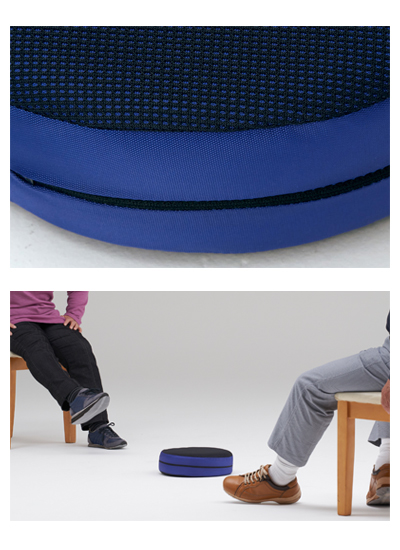 ・ボールに比べて転がったり弾んだりせず、やわらかいので痛くありません。座りながらでも蹴ることができるため、下肢の運動におすすめです。