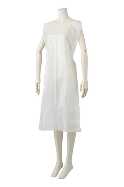 ・防水性に優れたポリエチレン製の袖無し使い捨てエプロンです。