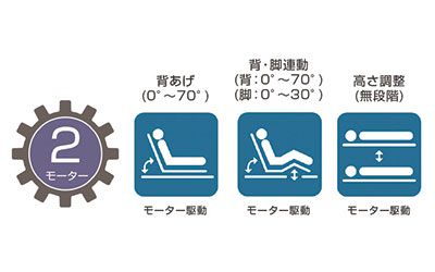 ●サイズ/全幅97.5×全長203.5×全高71〜101cm、床面高:28〜58cm ●材質/ヘッドボード・フットボード:ウォールナット柄プリント紙化粧繊維板、ボトム・サイドレール:スチール・樹脂 ●電源/AC100V ●最大使用者体重/90kg ●セット内容/本体、サイドレール2本 ●標準機能/背上げ(0〜70°)、背・脚運動(背:0〜70°、脚:0〜30°)、高さ調整(無段階) ●生産国/中国