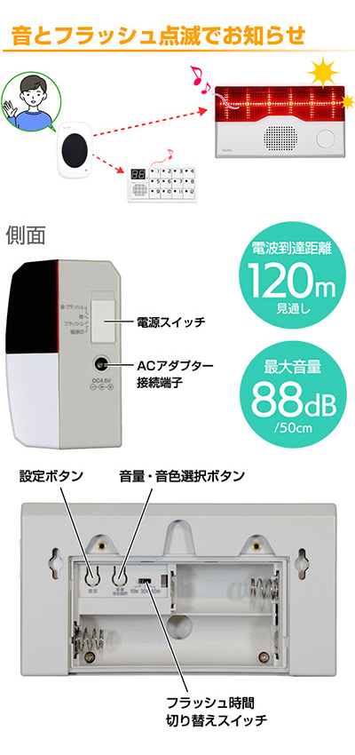 ・目立って見やすいフラッシュ点滅で、耳が聞こえにくい方や騒がしい場所でもお知らせできます。