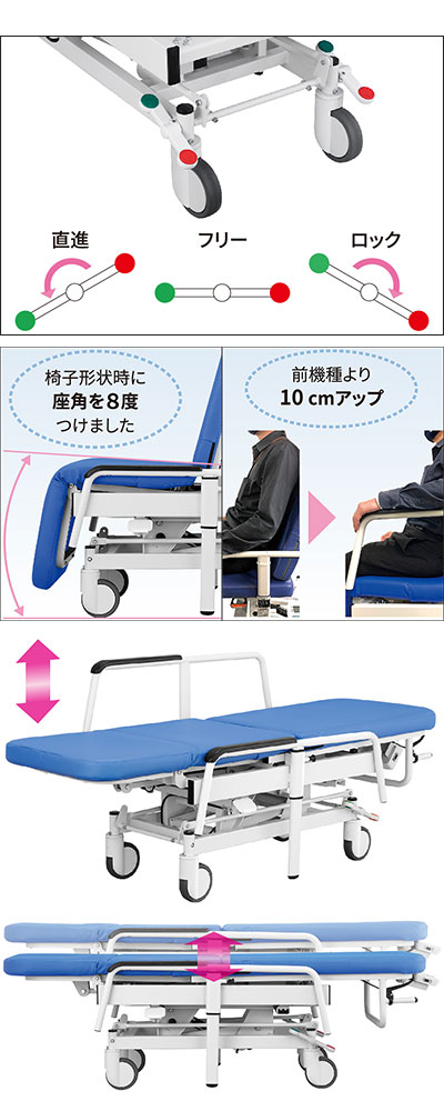 ●サイズ/幅61×奥行104×高さ120〜135.5cm、ストレッチャー時:奥行160×高さ50〜65.5cm