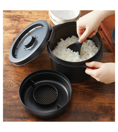 ・ご飯の糖質を約20%カットできる電子レンジ専用炊飯器。蒸す、煮る、炊くの調理にも使えます!