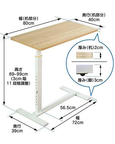 ●サイズ/幅72×奥行39×69〜99(11段階)cm、テーブル:幅80×奥行40cm
