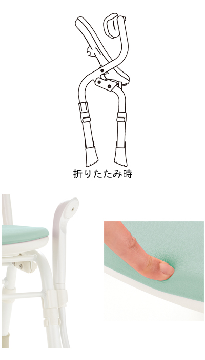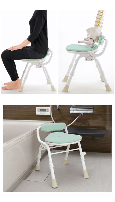 ●サイズ/幅39×奥行43〜51×高さ46.5〜56.5cm、折りたたみ時:奥行21.5×高さ58〜68cm、座面:幅36.5×奥行31cm、座面高:35〜45cm(6段階/2cm) ●重さ/3kg ●材質/ポリエチレン、EVA樹脂、アルミ、合成ゴム、ポリアセタール ●最大使用者体重/100kg ●標準機能/折りたたみ、ソフト座面、シャワーフック ●生産国/中国 ●SIAA防カビ加工 ●完成品