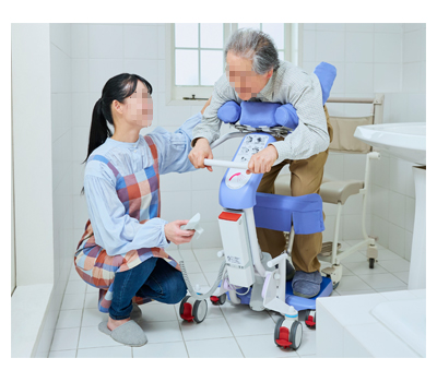 ・シャワーチェアやシャワーキャリーへの移乗、臀部や脚をシャワーで洗い流す際にご利用いただけます。