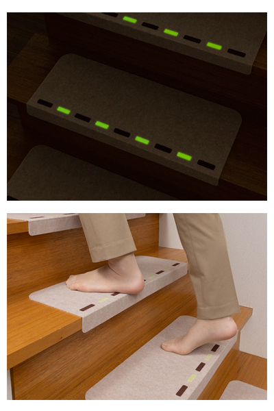 ・明かりがなくても柄が光って段差が分かりやすい!安心を兼ね備えた吸着階段マット。