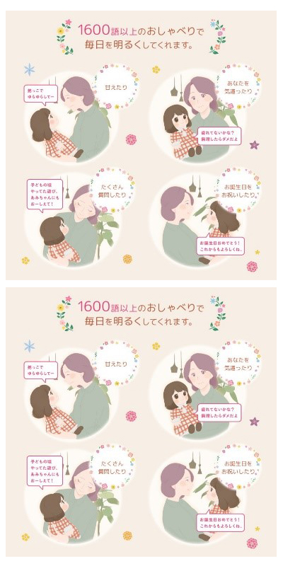 ・お話しは1600通り以上、童謡や唱歌・早口言葉も話すことができて、日常生活を豊かにしてくれます。