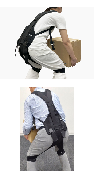 ・前かがみ姿勢と起き上がり動作による腰への負担を軽減するワークウェア(男女兼用)。