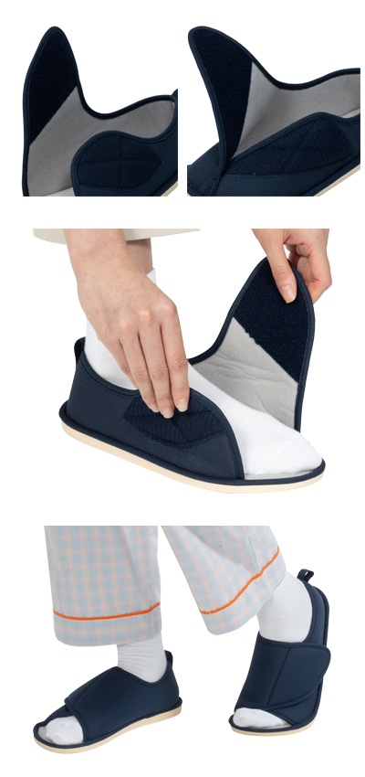 ・甲が高く、大きく開く履き口。脱ぎ履き時の転倒を予防。