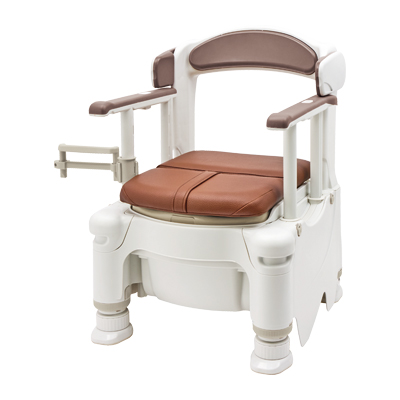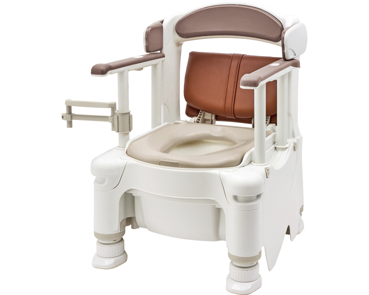 ●サイズ/幅53×奥行60×高さ76〜90cm、座面:幅36×奥行42.5cm、穴部:幅19×奥行31cm、便座高:35〜49cm(15段階/1cm)、ひじ掛け高:低設定0・6〜24cm(8段階/3cm)・高設定6・12〜30cm(8段階/3cm)、ひじ掛け内寸:41cm ●重さ/14kg ●材質/本体・バケツ・ひじ掛け:ポリプロピレン、前脚:ABS樹脂、背もたれクッション:ポリエチレン、折れ座面:合成皮革・ウレタンフォーム ●最大使用者体重/100kg ●標準機能/ひじ掛け昇降、ひじ掛け高さ調整、ソフト便座、キャスター付、オイルダンパー、防汚トレイ ●生産国/日本 ●抗菌加工 ●要組立