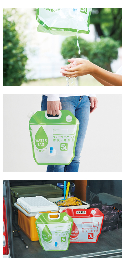 ・蛇口付きで使いやすい緊急用ウォーターバッグ。