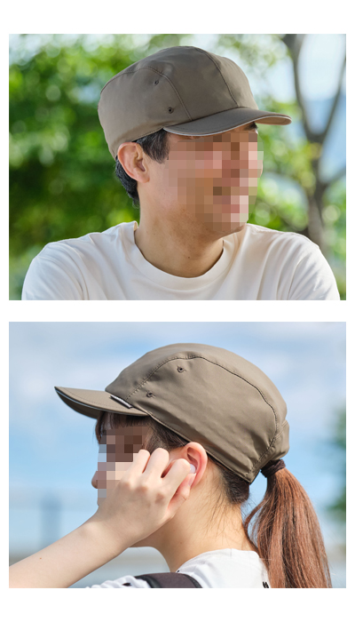 ・結んだ髪の毛を帽子の後ろから出すことができます。